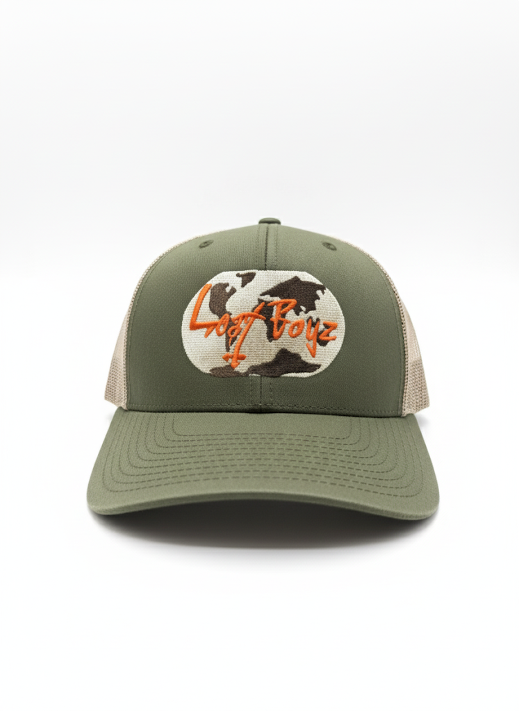 Navigate the concrete jungle with the Urban Explorer hat. It combines a rugged olive green and khaki base with our signature 'Lost Boyz' script in a bold pop of orange over a classic camo patch. Perfect for your daily adventures, wherever they may be.